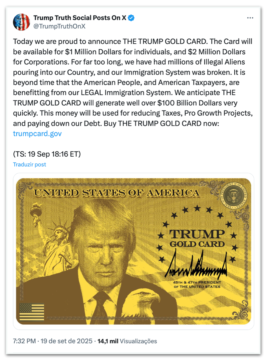 Trump impõe taxa de US$ 100 mil para visto de trabalho especializado 19 de setembro de 2025 Nenhum comentário Carregar Mais »