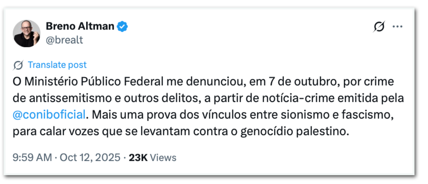 Jornalista é denunciado pelo MPF por racismo contra judeus 12 de outubro de 2025 Nenhum comentário Carregar Mais »
