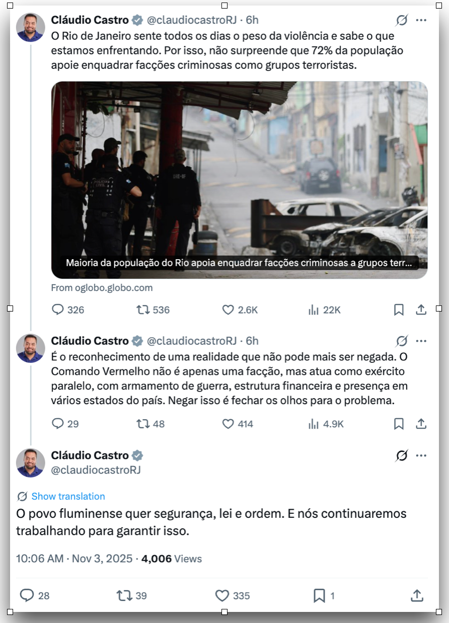 Leia a íntegra do relatório da Polícia do Rio enviado ao STF 3 de novembro de 2025 Nenhum comentário Carregar Mais »