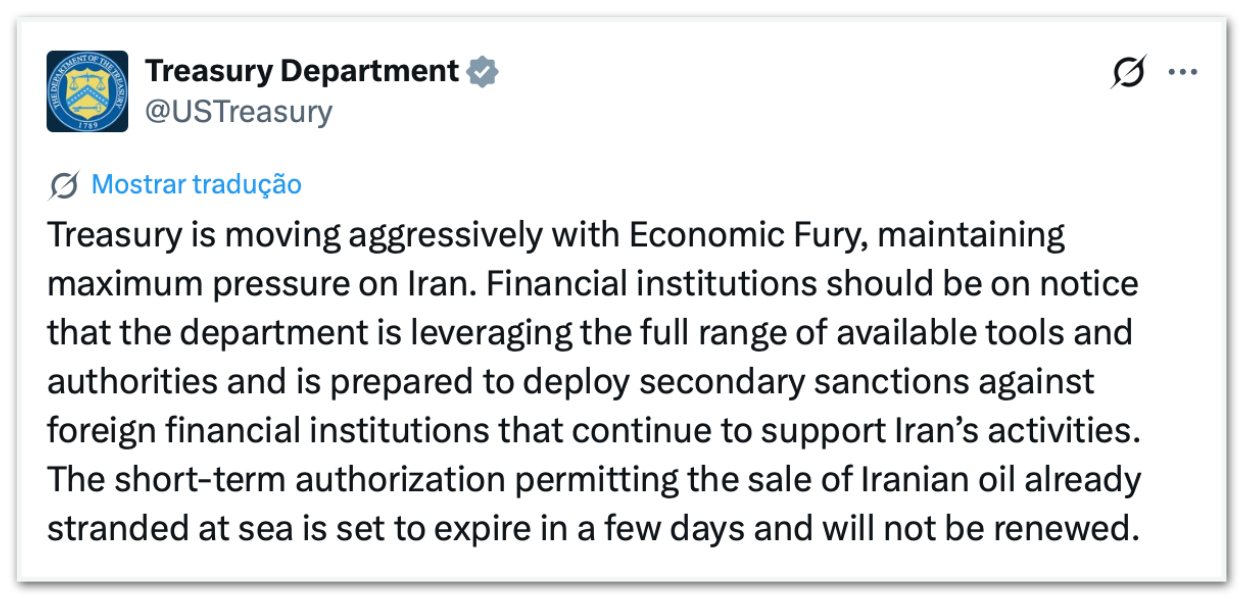 “Vocês deveriam ficar lá, na verdade, porque algo pode acontecer nos próximos 2 dias, e estamos mais inclinados a ir para lá”, declarou ele sobre Islamabad, capital paquistanesa. “É mais provável, sabe por quê? Porque o marechal está fazendo um ótimo trabalho”, afirmou Trump, referindo-se ao chefe do Exército paquistanês Asim Munir.