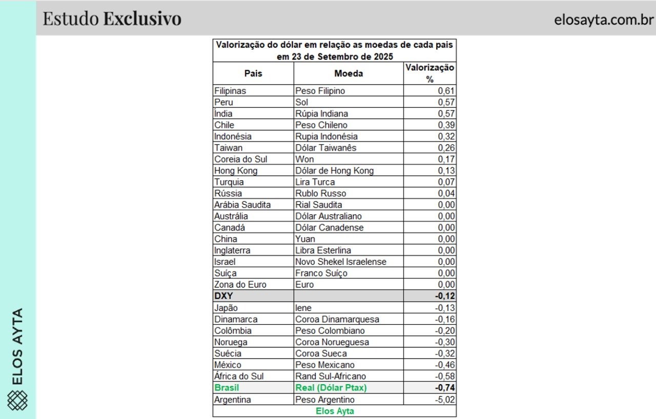 Real só perde para o peso argentino em dia de “ótima química” entre Trump e Lula 23 de setembro de 2025 Nenhum comentário Carregar Mais »