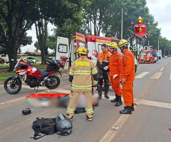Quando chegaram ao local, os socorristas encontraram o motociclista e a ciclista caídos na pista. Ambos estavam conscientes e orientados. Eles receberam atendimento seguindo o protocolo de trauma e foram encaminhados a hospitais da região.