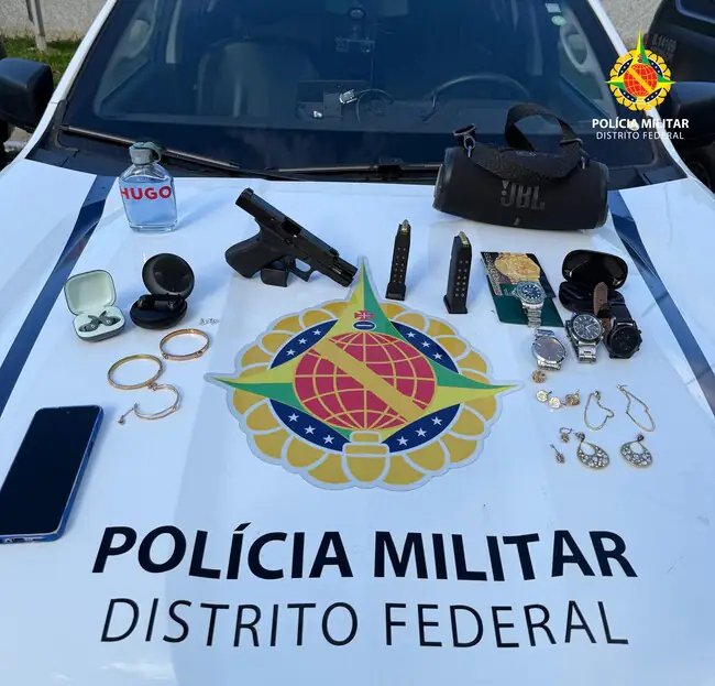 Com base em informações de inteligência, as equipes localizaram o primeiro suspeito no Paranoá. Ao ser abordado, o indivíduo confessou a autoria do crime e indicou que a arma subtraída — uma pistola Glock G19, calibre 9mm — estava escondida sob o travesseiro de um berço em sua residência. No imóvel, além do armamento, os policiais recuperaram joias, relógios e outros pertences da vítima.