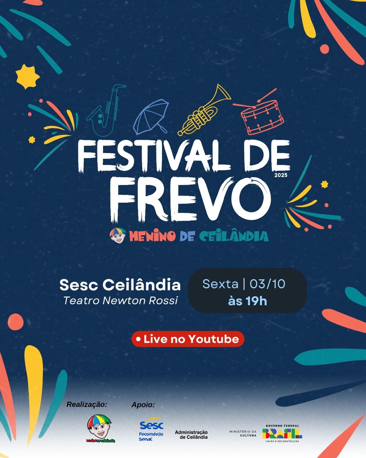 Festival de Frevo do Menino de Ceilândia celebra 30 anos do Instituto com concurso inédito no DF 3 de outubro de 2025 Nenhum comentário Carregar Mais »