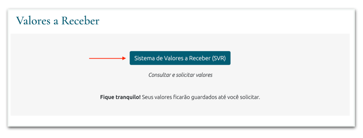 - em caso de haver dinheiro esquecido, a pessoa receberá a seguinte mensagem e poderá clicar em “Acessar o SVR”, onde será direcionado para uma página com login do gov.br: