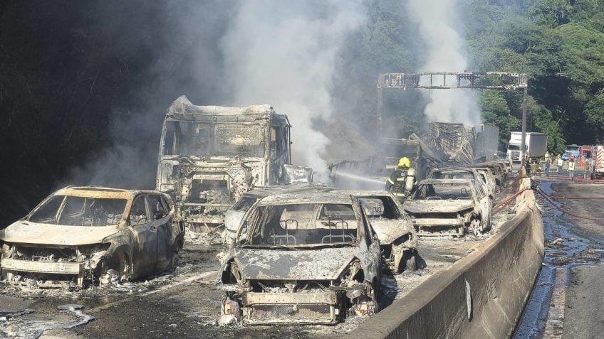 Pelo menos 25 veículos pegaram fogo na tarde deste domingo (6.abr.2025) na BR-101, no Morro dos Cavalos, em Palhoça, na Grande Florianópolis, depois que um caminhão carregado de etanol tombou e explodiu. O Corpo de Bombeiros Militar informou que 5 pessoas ficaram feridas, sendo que o motorista da carreta e sua mulher sofreram queimaduras graves, com 30% e 20% do corpo queimado, respectivamente.