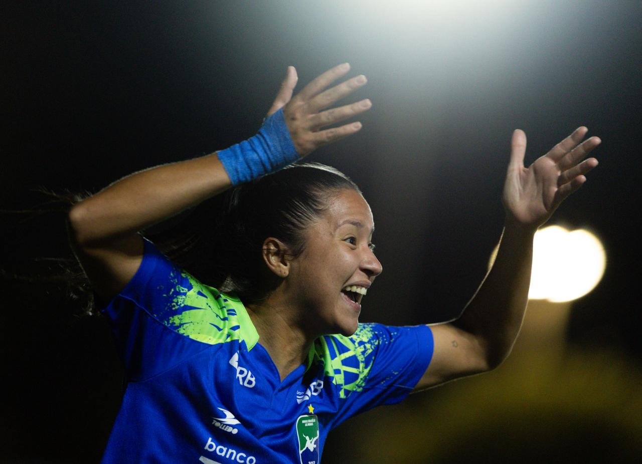 Gaby, do Minas Brasília, comemorando gol diante do Ceilândia no Candangão Feminino