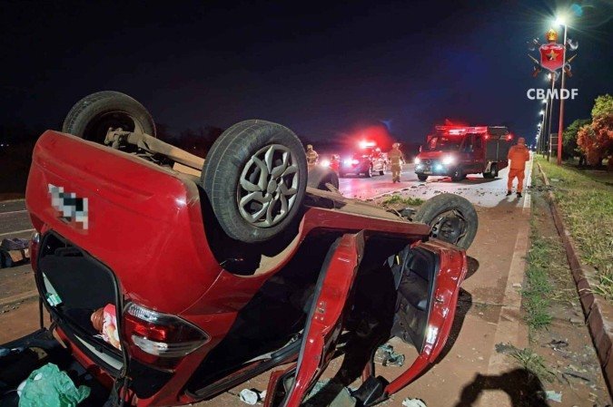 Na madrugada deste domingo (28/9), um carro capotou após bater em um poste de luz na Epia, sentido Santa Maria. Perto das 2h da manhã, duas faixas foram interditadas temporariamente e quatro viaturas de socorro foram ao local. O Corpo de Bombeiros Militar do Distrito Federal (CBMDF) foi acionado e encontrou um Fiat Mobi vermelho capotado, e a vítima estava no interior do carro, preso pelo cinto de segurança