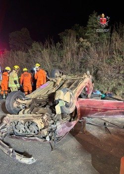 Um carro capotou e deixou três pessoas feridas na BR-020, em Planaltina, no Distrito Federal, nesta quinta-feira (2).