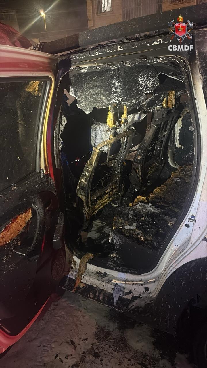 De acordo com o Corpo de Bombeiros Militar do Distrito Federal (CBMDF), o chamado foi registrado às 2h09. No local, as equipes encontraram um Renault Duster branco já tomado pelas chamas. Três viaturas foram empregadas na ocorrência.