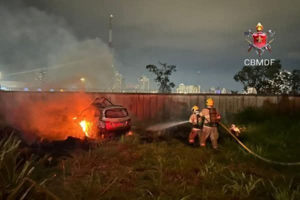 O Corpo de Bombeiros Militar do Distrito Federal (CBMDF), foi acionado às 21h32 e empregou duas viaturas no atendimento. Ao chegar ao local, as equipes encontraram o carro já em chamas e iniciaram imediatamente o combate, com ataque direto utilizando linhas de mangueira e água para controlar o fogo.