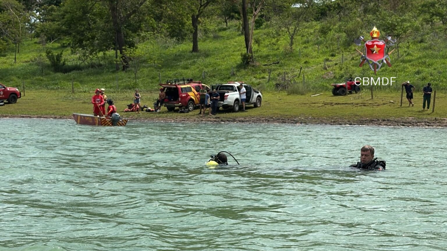 Neste sábado (03/01), em Alexânia (GO), foi concluída a operação de busca pelo banhista desaparecido no Lago Corumbá III, após o corpo ser localizado a cerca de 90 metros da margem, em área previamente demarcada pelas equipes de resgate.