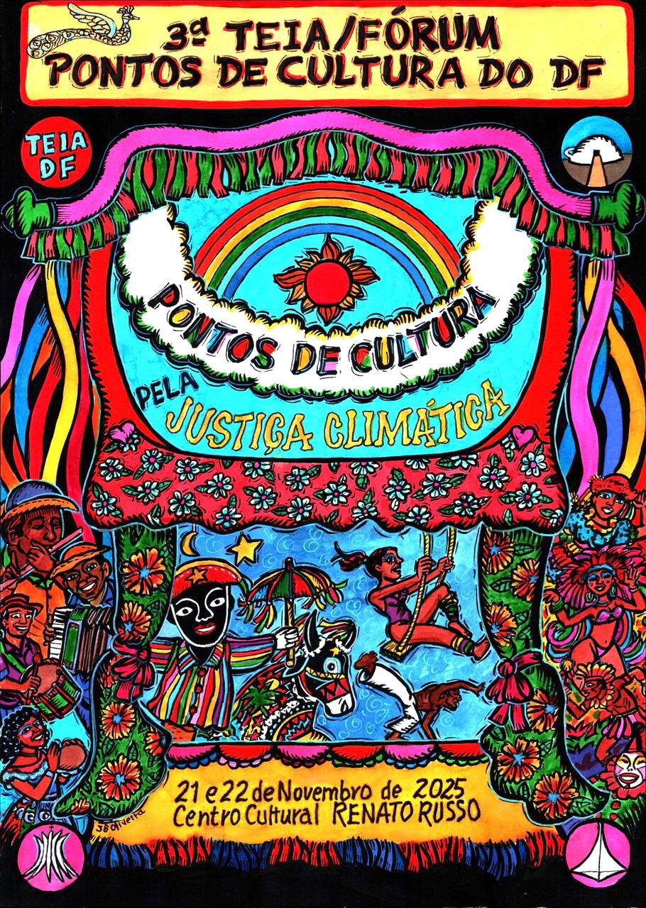 A Rede Cultura Viva DF anuncia a abertura das inscrições para a 3ª TEIA/Fórum dos Pontos e Pontões de Cultura do DF, que culminará um intenso ciclo de mobilização territorial. Com o tema inspirador “Pontos de Cultura pela Justiça Climática”, o evento promete ser um marco de convergência entre arte, política cultural e ação comunitária, trazendo para o centro do debate a urgência da crise climática sob a ótica da cultura de base comunitária.