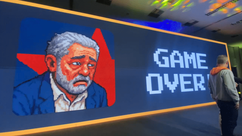 Um dos painéis do evento mostrava batalha entre Lula e Zema