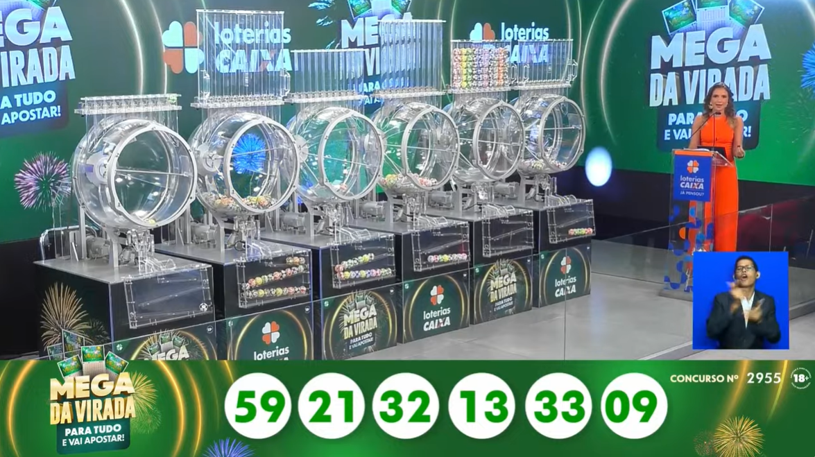 Sorteio da Mega da Virada, com prêmio de R$ 1,09 bilhão, aconteceu nesta quinta (1º/01)Crédito: Reprodução YouTube Caixa