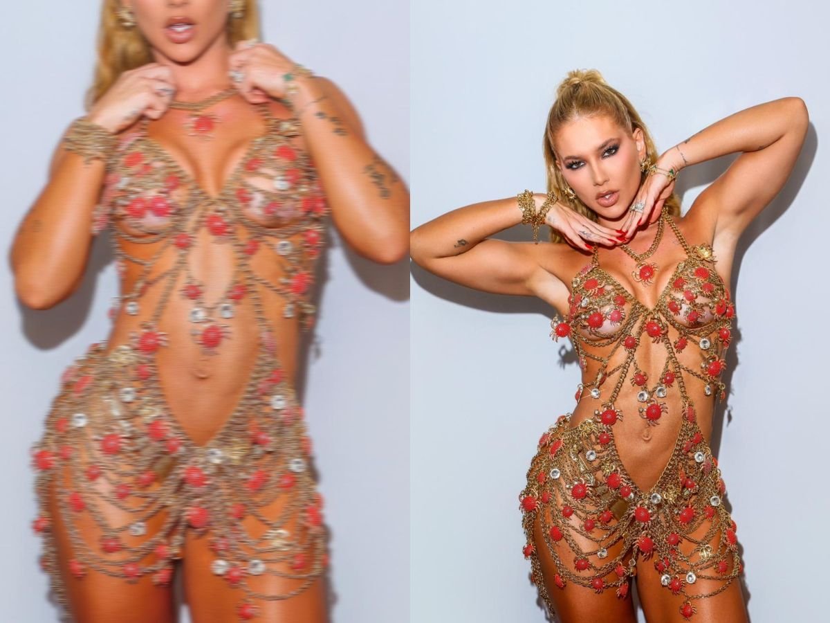 Virginia Fonseca surge em look com 100 caranguejos dourados e vestido de 9 kg em ensaio da Grande RioReprodução: Instagram/@ygormarques