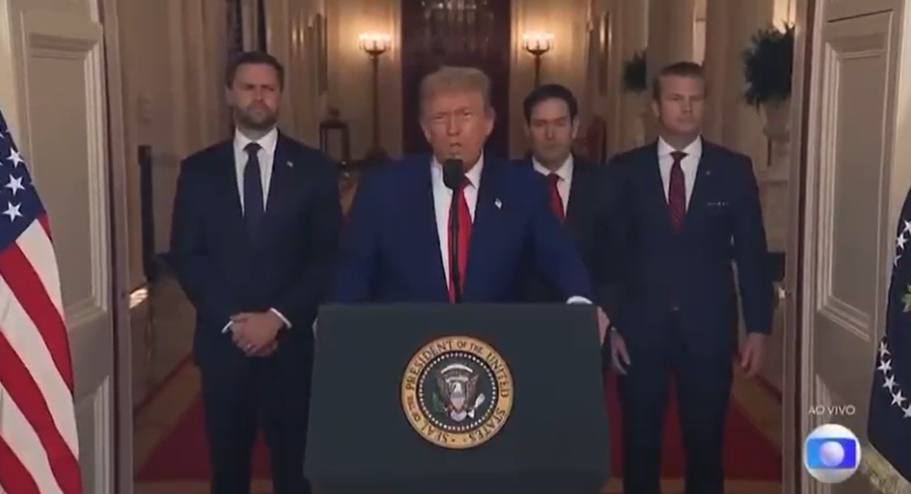 No discurso, o presidente americano informou o objetivo dos ataques: “Destruir a capacidade nuclear iraniana para que eles deixem de ser uma ameaça nuclear e do terror. Isso é muito importante para o mundo. Os ataques foram espetaculares. Foi um grande sucesso contra essas instalações”.