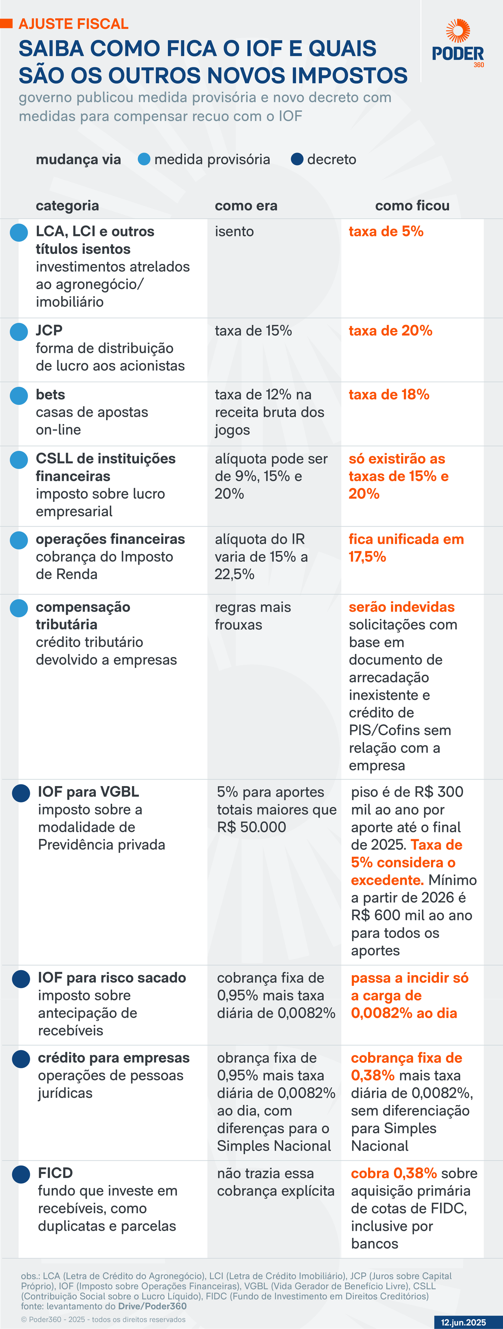 Entenda no infográfico abaixo um resumo de tudo o que muda com a medida provisória e com o decreto: