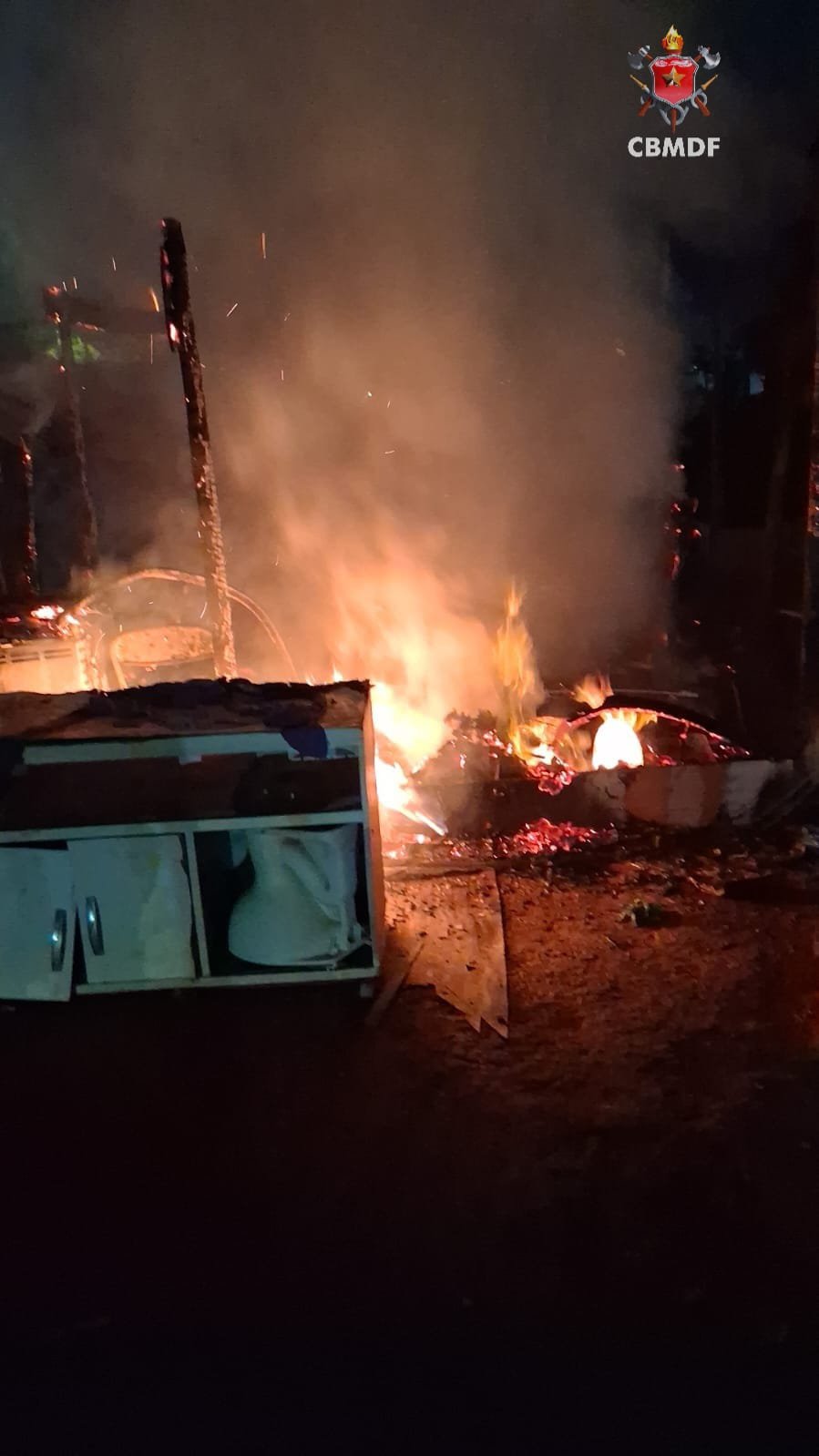 O Corpo de Bombeiros Militar do Distrito Federal (CBMDF) foi acionado às 20h42 para atender à ocorrência de incêndio em edificação, empregando duas viaturas no combate. Ao chegarem ao endereço, as equipes se depararam com a pequena residência tomada pelo fogo e com intensa fumaça saindo da estrutura.