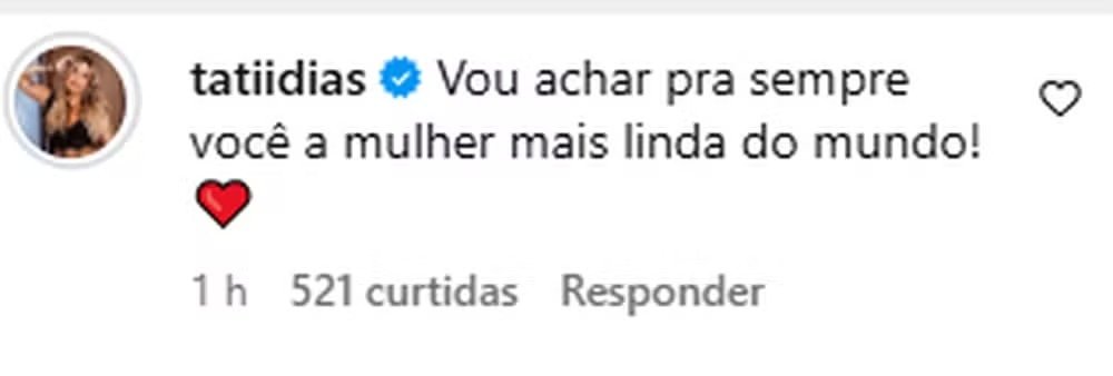 Tati também respondeu no mesmo tom. Em uma foto recente de Lauana, a influenciadora se declarou: “Vou achar para sempre você a mulher mais linda do mundo!”. As mensagens animaram os fãs do ex-casal, que não esconderam a empolgação. “Sejam muito felizes”, escreveu uma seguidora. “Meu casal vive”, comemorou outra.