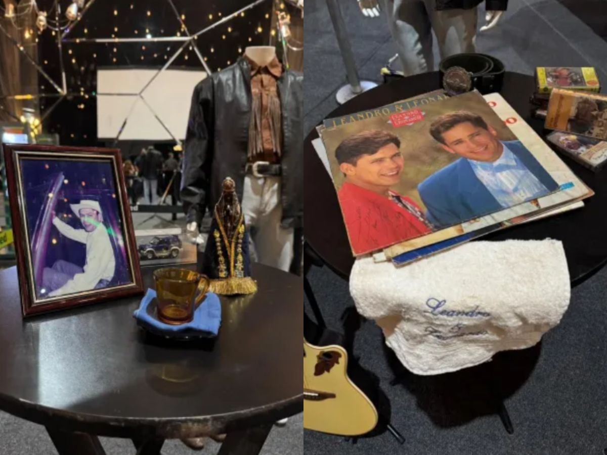O cantor Leonardo, de 61 anos, expôs um acervo de itens de Leandro, falecido em 1998 aos 36 anos, vítima de um câncer no pulmão, durante uma coletiva de imprensa, nesta quarta-feira (21/5),  no Espaço Unimed, em São Paulo. O artista está iniciando um novo projeto relembrando o início de sua carreira, ao lado do seu irmão.