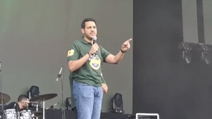 Ministro da Advocacia Geral da União fala rapidamente em evento religioso em evento prestigiado por inúmeros opositores do governo