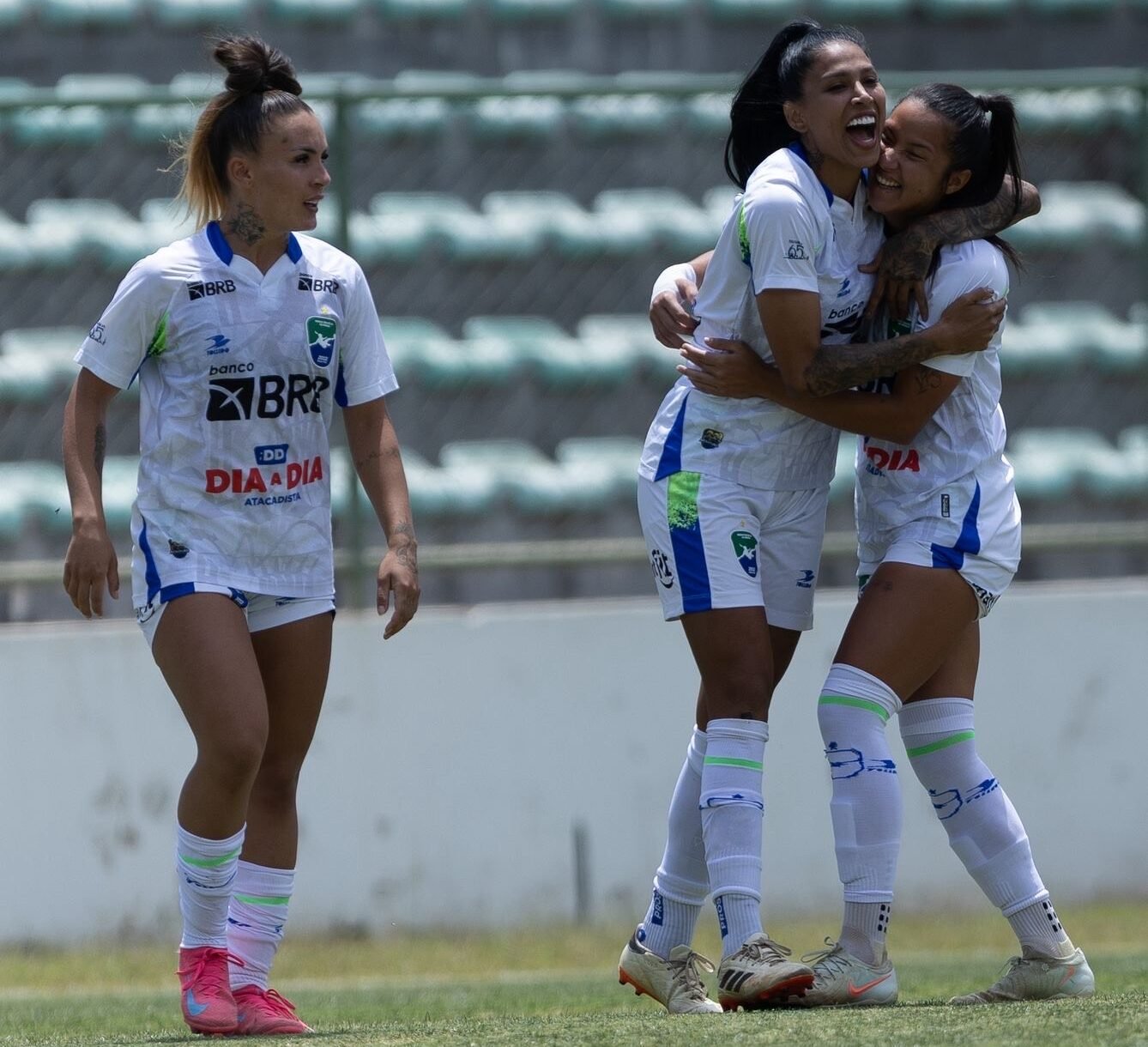 Jogadoras do Minas Brasília comemorando gol pelo Candangão Feminino
