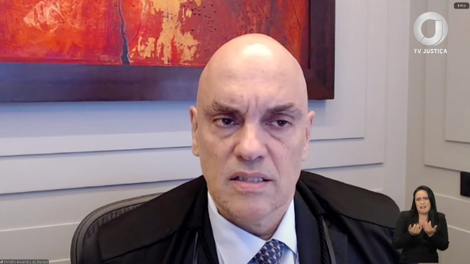 Na imagem acima, Moraes participa de forma remota de julgamento no STF em 27 de março de 2025