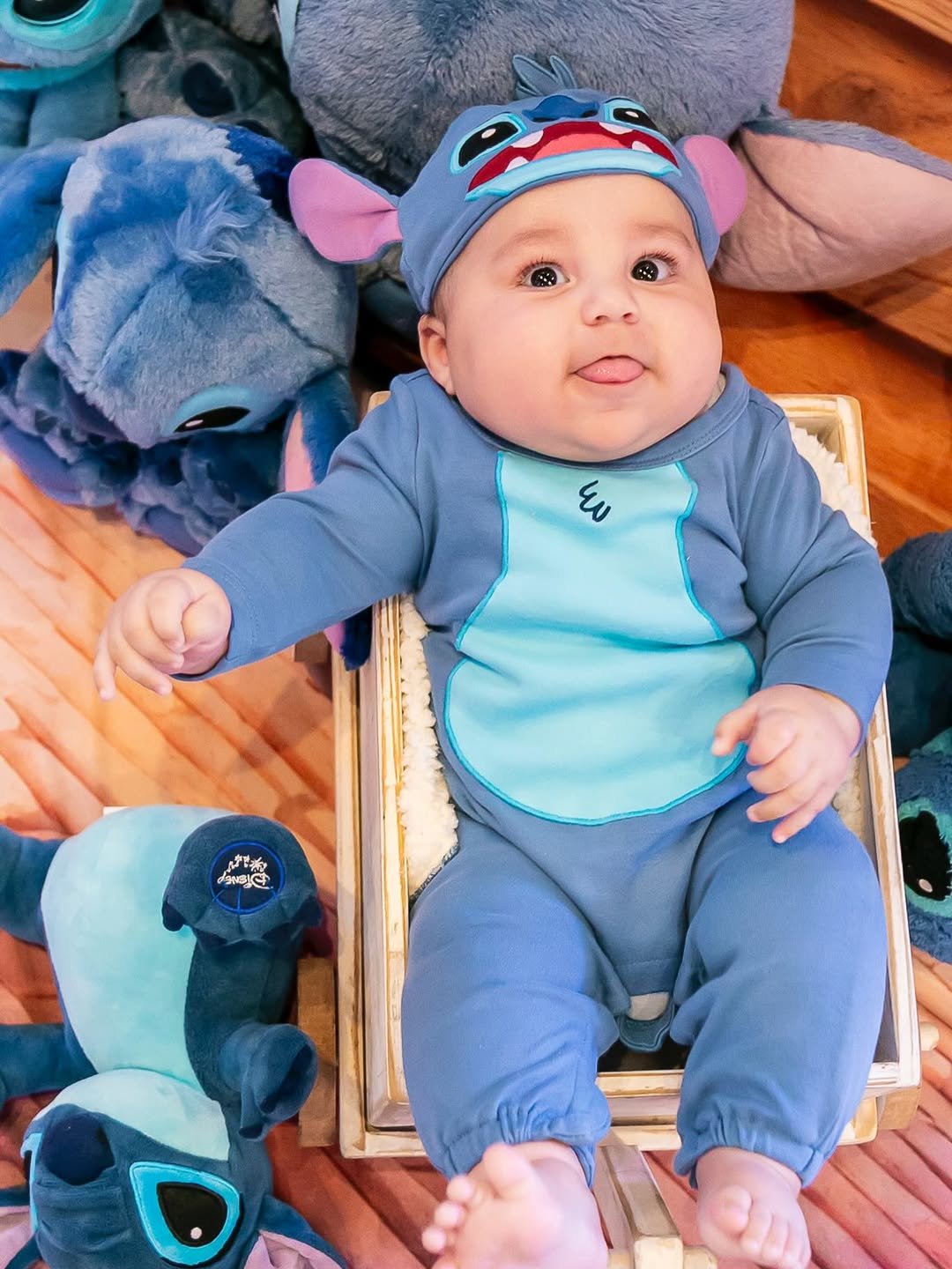 “Ohana quer dizer família!”. Filho caçula de Viih Tube e Eliezer, Ravi posou para um ensaio fotográfico para celebrar cinco meses de vida. O bebê usou uma roupa de Stitch, da Disney, e encantou seguidores com os registros. Nas imagens, o herdeiro apareceu cercado de bichos de pelúcia de um dos personagens preferidos da mãe dele.