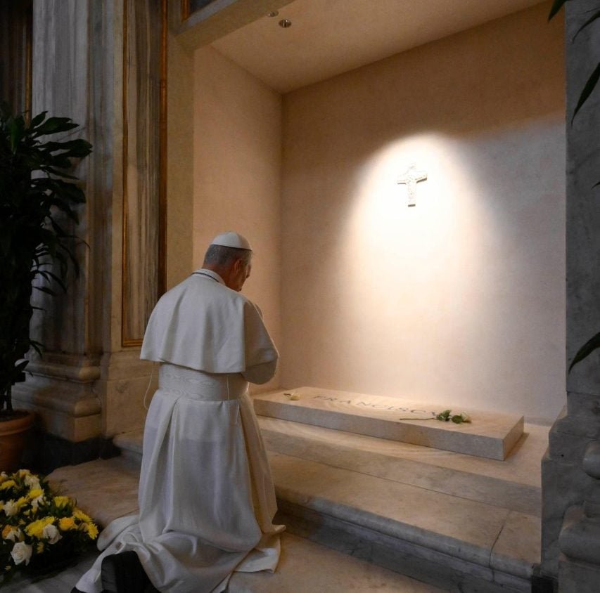 Papa Leão 14 visita túmulo de Francisco em Roma; veja fotos