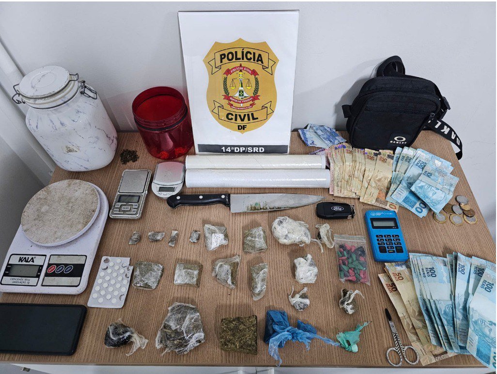 A ação ocorreu na Q. 25, do Setor Oeste do Gama. A dupla foi surpreendida quando retornava ao local utilizado para armazenar drogas, logo após realizar vendas na modalidade delivery. Durante a ação, foram apreendidas porções de maconha, cocaína, ecstasy e skunk, além de comprimidos de diazepam, uma balança de precisão e R$ 3,4 mil em espécie. Após o cumprimento das formalidades legais, os envolvidos foram encaminhados à carceragem da PCDF, onde permanecem à disposição da Justiça