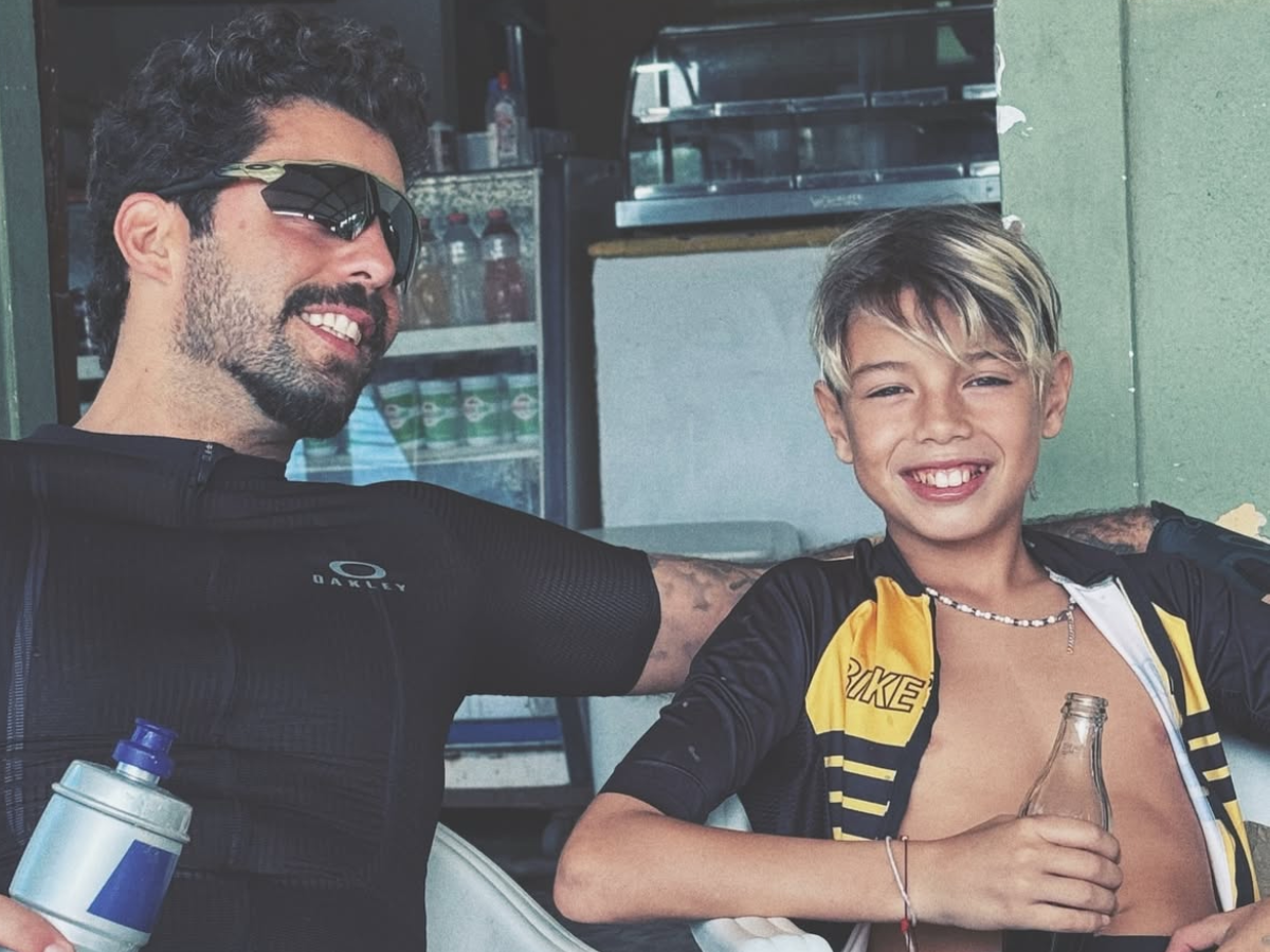 Pedro contou que o filho está tão empolgado com o esporte, que já o acorda para surfar: “Só que nas últimas duas semanas o Dom foi picado pelo mosquito do surf e agora não fala em outra coisa! Ele que me acorda para surfar! E vou confessar, não tem preço poder fazer um surf com meu filho! A verdadeira riqueza da vida e o Coração está cheio. Hoje na água eu realizei isso!”, concluiu.