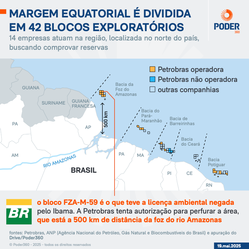 Na última 5ª feira (22.mai), Chambriard afirmou que a Petrobras definiu um plano para perfurar 8 poços exploratórios na Bacia da Foz do Amazonas, na Margem Equatorial, que se estende ao longo da costa norte do país, do Amapá ao Rio Grande do Norte.