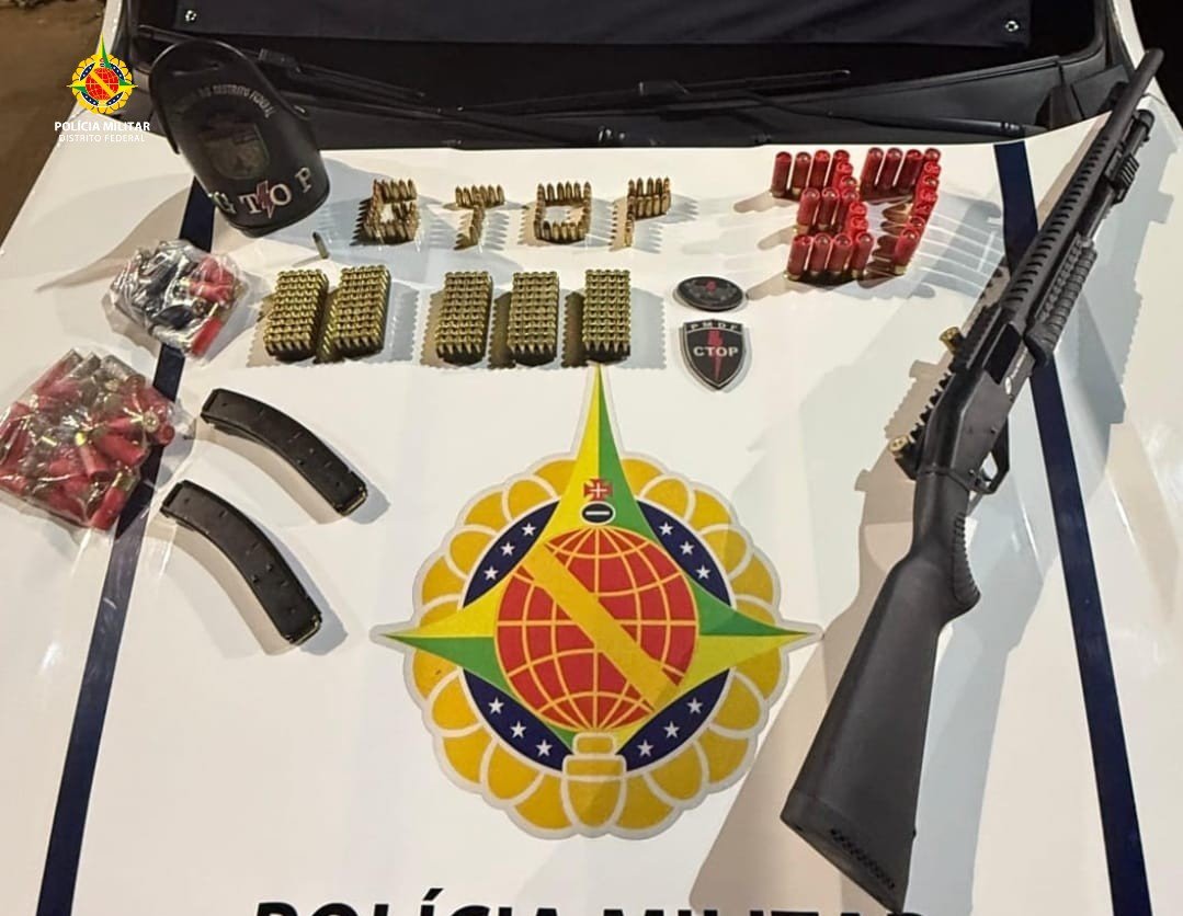 Policiais militares do Grupo Tático Operacional do 17º Batalhão (Gtop 37) apreenderam uma espingarda calibre 12 e várias munições enquanto apuravam uma ocorrência de estupro de vulnerável no Conjunto 05 do Setor Habitacional Arniqueiras. Por volta das 21h desta quinta-feira (25).