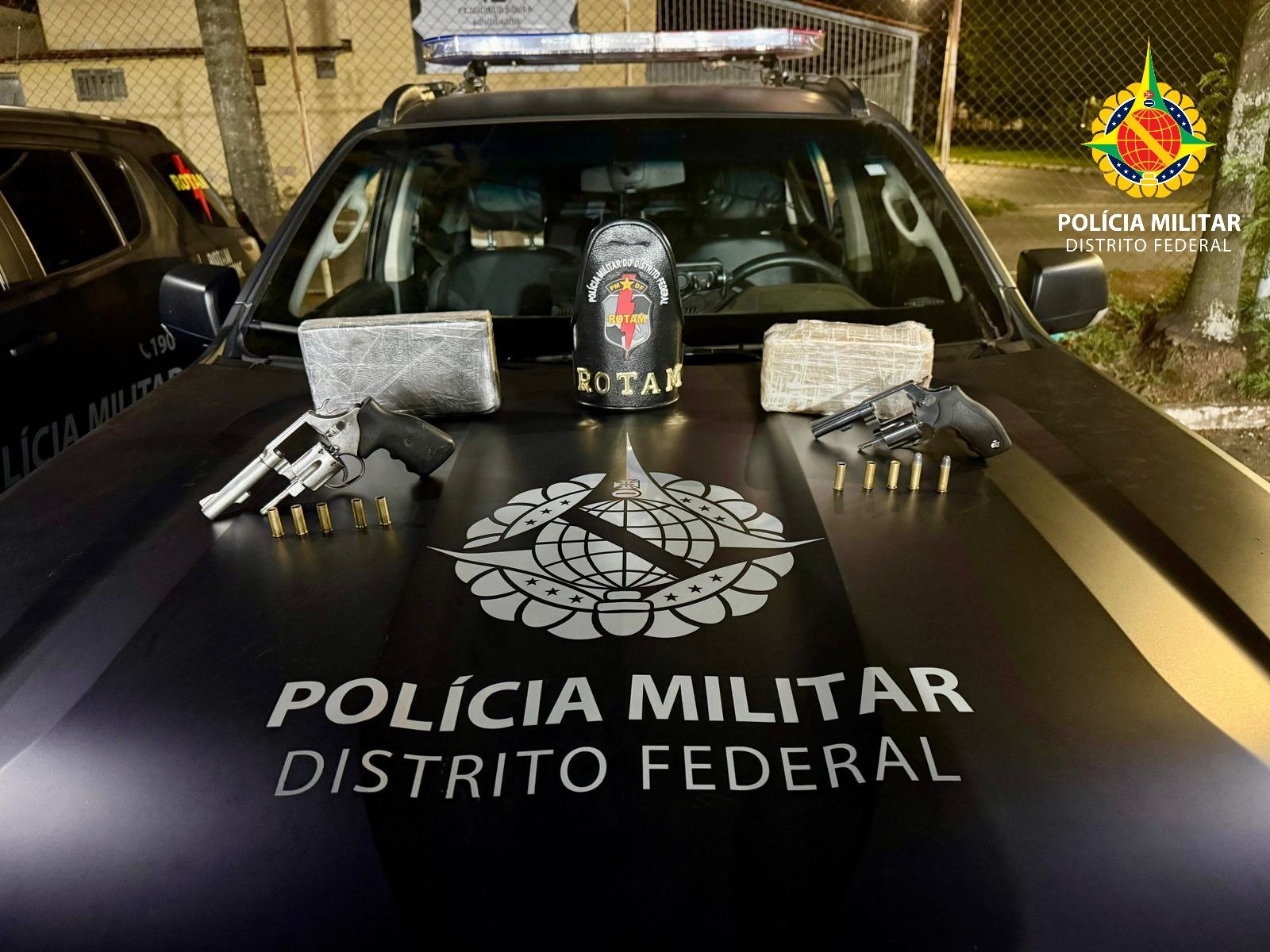 Na noite desta quinta-feira (6), equipes da ROTAM apreenderam dois revólveres calibre .38, tabletes de cocaína e crack e um veículo durante uma operação na DF-290, vicinal 385, no Gama.