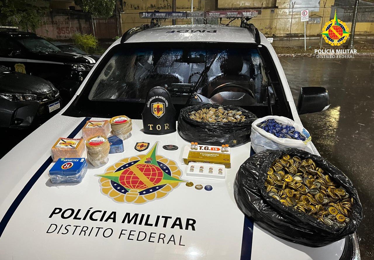 O TOR interceptou um veículo de transporte clandestino na DF 290. Durante a fiscalização, os policiais encontraram no porta-malas do veículo oito ampolas do medicamento Tirzepatida, popularmente conhecido como “Mounjaro”, utilizado para emagrecimento. A Tirzepatida tem sua produção, comércio e transporte controlados em território nacional.