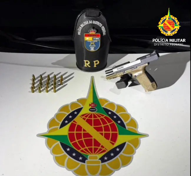 Durante uma abordagem, na QNO 18, Conjunto 72, foi encontrada na cintura de um homem uma pistola CANIK TP9, de fabricação turca, com 18 munições intactas. Ele possui diversas passagens pelo crime de homicídio e porte ilegal de arma de fogo.
