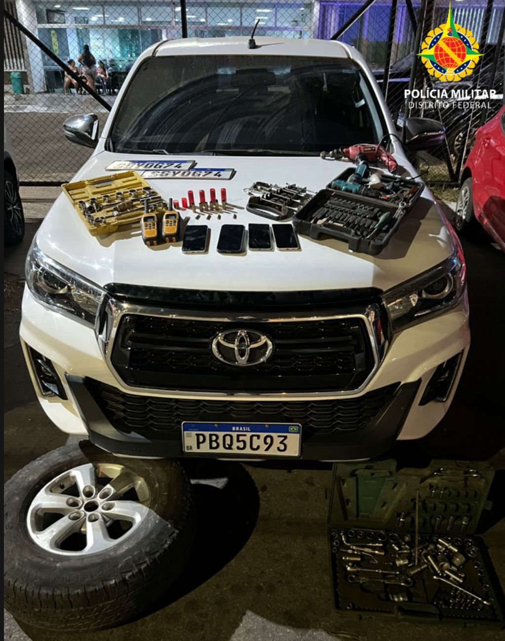 A Polícia Militar do Distrito Federal, em ação integrada com a Polícia Militar de Goiás (PMGO), desmantelou na tarde desta terça-feira (9), por volta das 16h, uma organização criminosa especializada em furtar e adulterar sinais identificadores de veículos na QNM 25, Conjunto D, em Ceilândia.