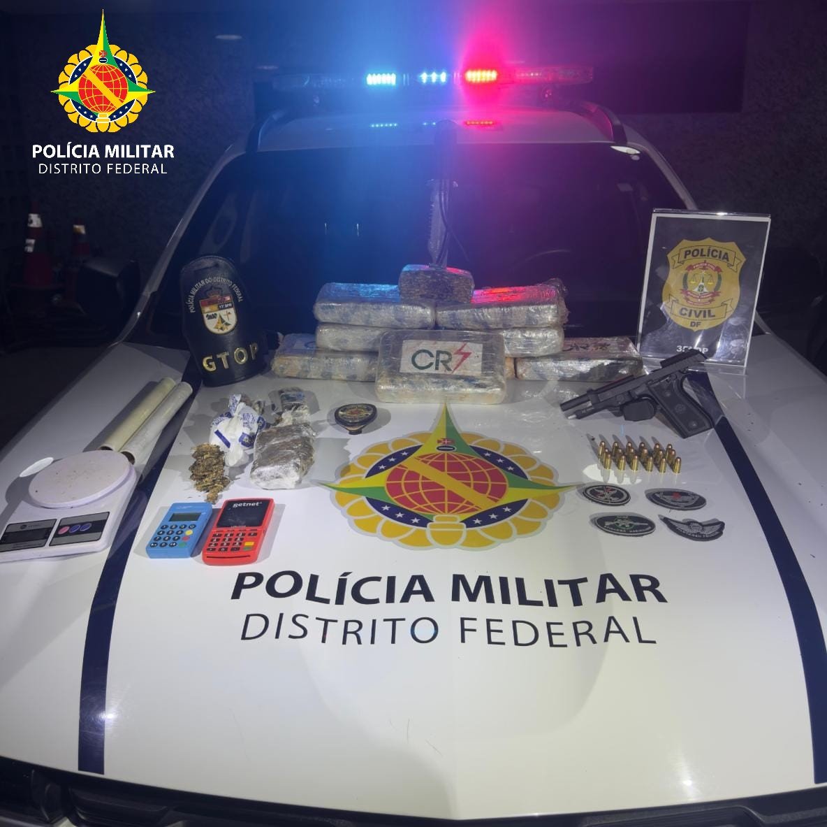 A Polícia Militar do Distrito Federal, por meio do Grupo Tático Operacional de Sobradinho (GTOP 33), em operação conjunta com a Seção de Repressão às Drogas da 35ª Delegacia de Polícia (SRD/35ª DP) e com apoio do Águia 33, realizou nesta quarta-feira (01/10), por volta das 18h, em Nova Colina em Sobradinho, a prisão de um indivíduo por porte ilegal de arma de fogo e tráfico de substância entorpecente.
