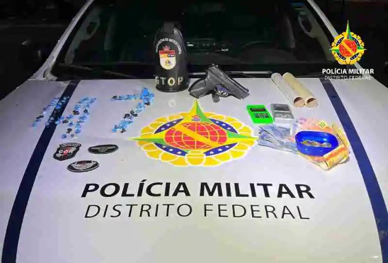 Na madrugada deste sábado (4), por volta de 1h15, policiais militares da RP 47 e do GTOP 47, do 27º Batalhão, prenderam em flagrante um indivíduo pelo crime de tráfico de drogas e apreenderam um simulacro de arma de fogo na Quadra 405 do Recanto das Emas.
