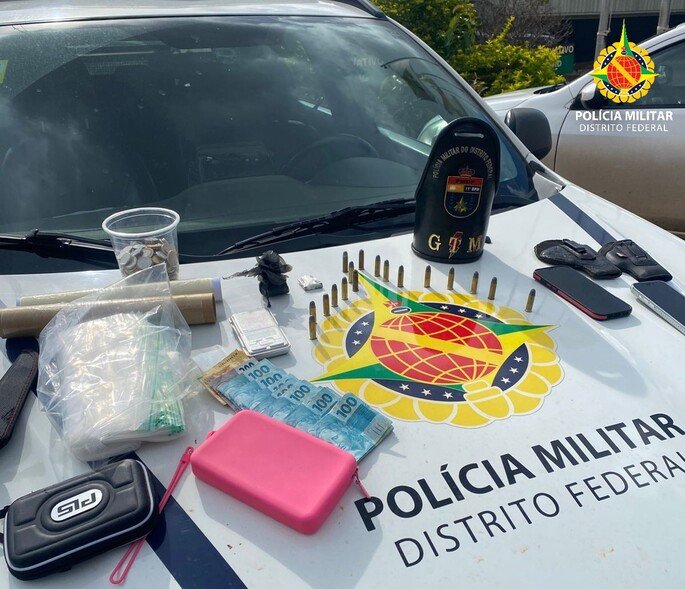Durante a intervenção policial, foram apreendidas duas porções de maconha, 14 munições calibre .38 Special, duas munições calibre .38, uma munição calibre .32, além de R$ 10.251,15 em espécie. Também foram recolhidos dois aparelhos celulares, uma balança de precisão e diversos apetrechos utilizados para fracionamento e preparo de drogas.