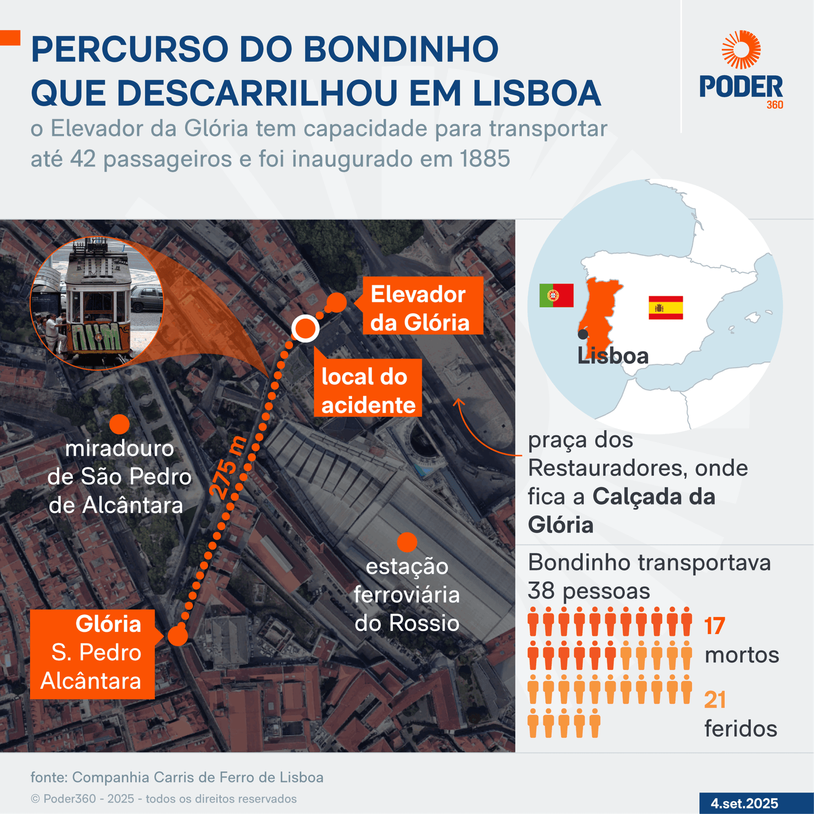 Subiu para 17 o número de mortos no acidente de 4ª feira (3.set.2025) no Elevador da Glória, em Lisboa (Portugal).