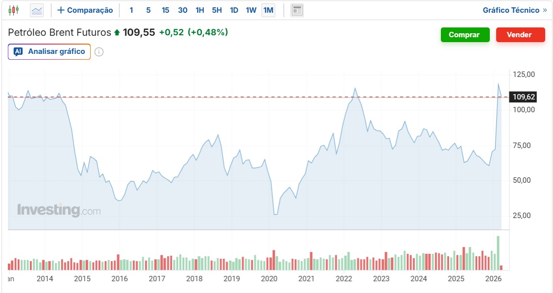 Além disso, preços sustentados acima de US$ 100 tendem a pressionar bancos centrais ao redor do mundo, reduzindo o espaço para políticas monetárias expansionistas e impactando diretamente ativos de risco.