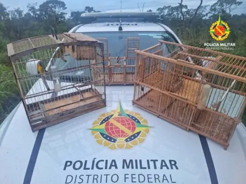 No interior do imóvel, foram encontrados três pássaros da fauna silvestre brasileira mantidos irregularmente em cativeiro, sem autorização do órgão ambiental competente. Diante da constatação, foi lavrado um Termo Circunstanciado de Ocorrência (TCO) por crime ambiental, conforme o artigo 29, caput, inciso III, da Lei nº 9.605/1998, que trata dos crimes contra o meio ambiente.