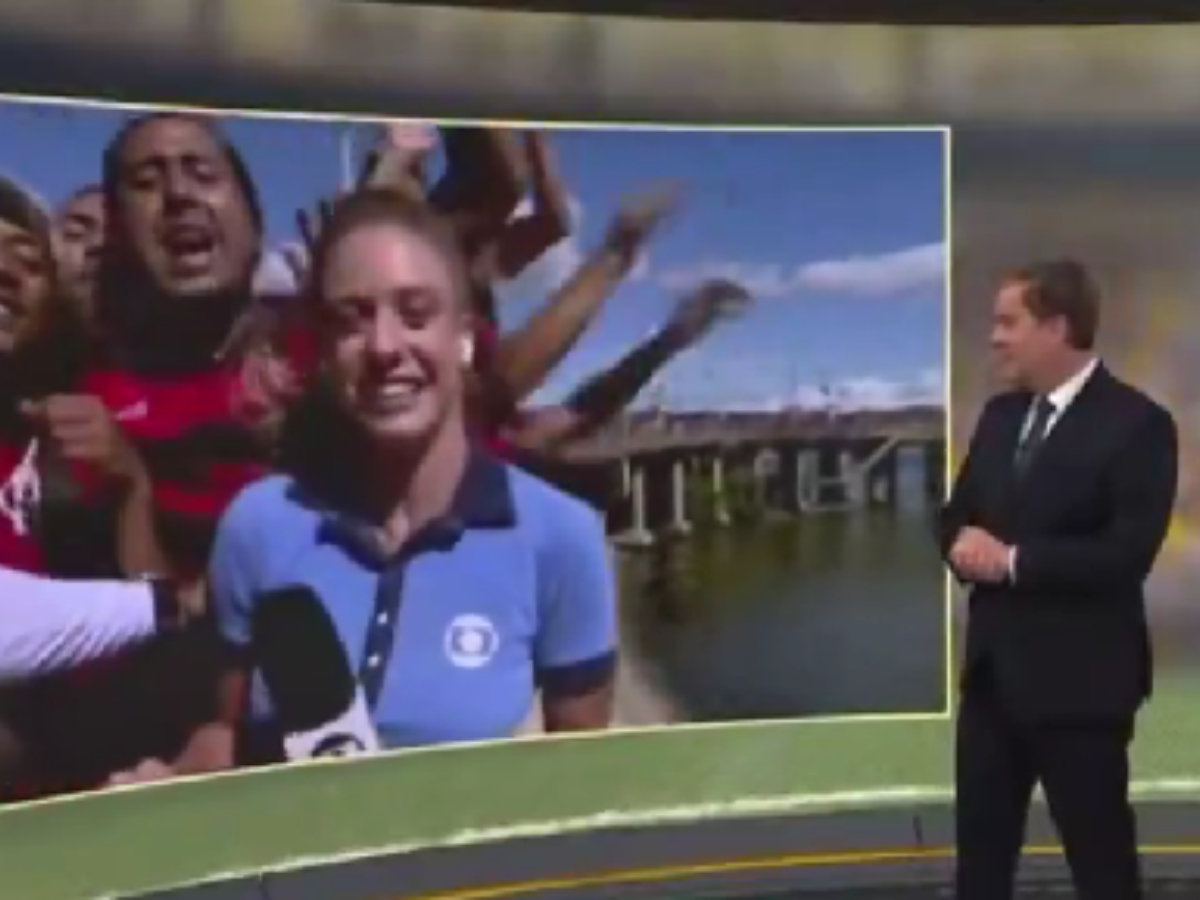 Duda Dalponte, da TV Globo, foi vítima da agressão durante uma entrada ao vivo na cobertura sobre a final da Libertadores