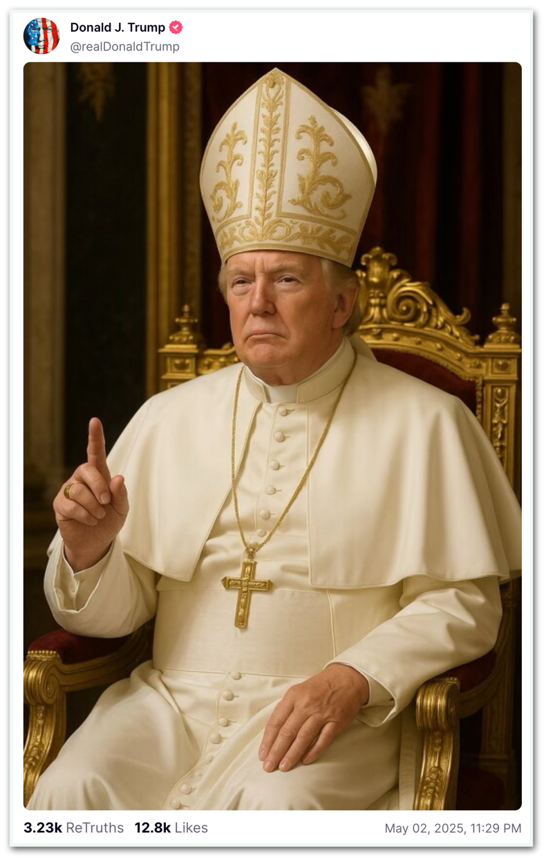 Em 29 de abril, ao ser questionado por jornalistas na Casa Branca sobre quem preferiria que se tornasse o próximo papa, o republicano disse que gostaria de ocupar o posto.