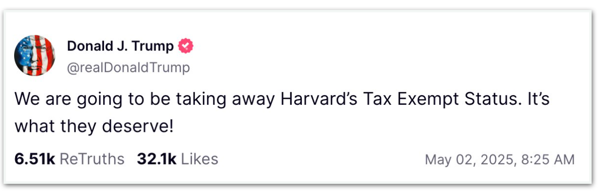 Esta não é a 1º vez que o presidente menciona a possibilidade de retirar a isenção fiscal de Harvard. Em 15 de abril, data limite para a declaração de impostos nos EUA, Trump fez uma publicação semelhante, sem detalhar como procederia.