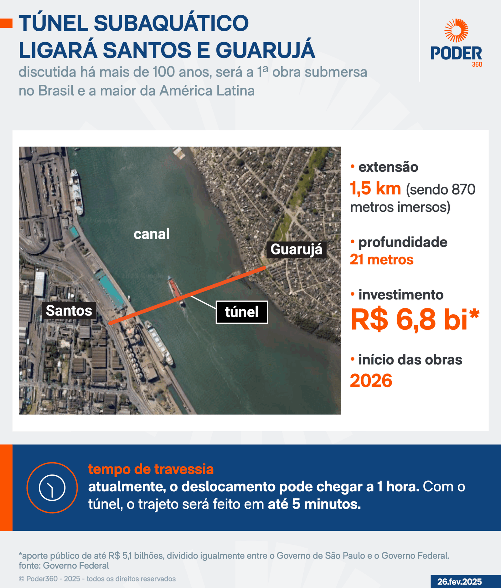 O governo de São Paulo e a União realizam nesta 6ª feira (5.set.2025) o leilão para escolher a empresa responsável pela construção e operação do túnel submerso que ligará Santos ao Guarujá. O certame será às 16h, na sede da B3 (Bolsa de São Paulo), em São Paulo.