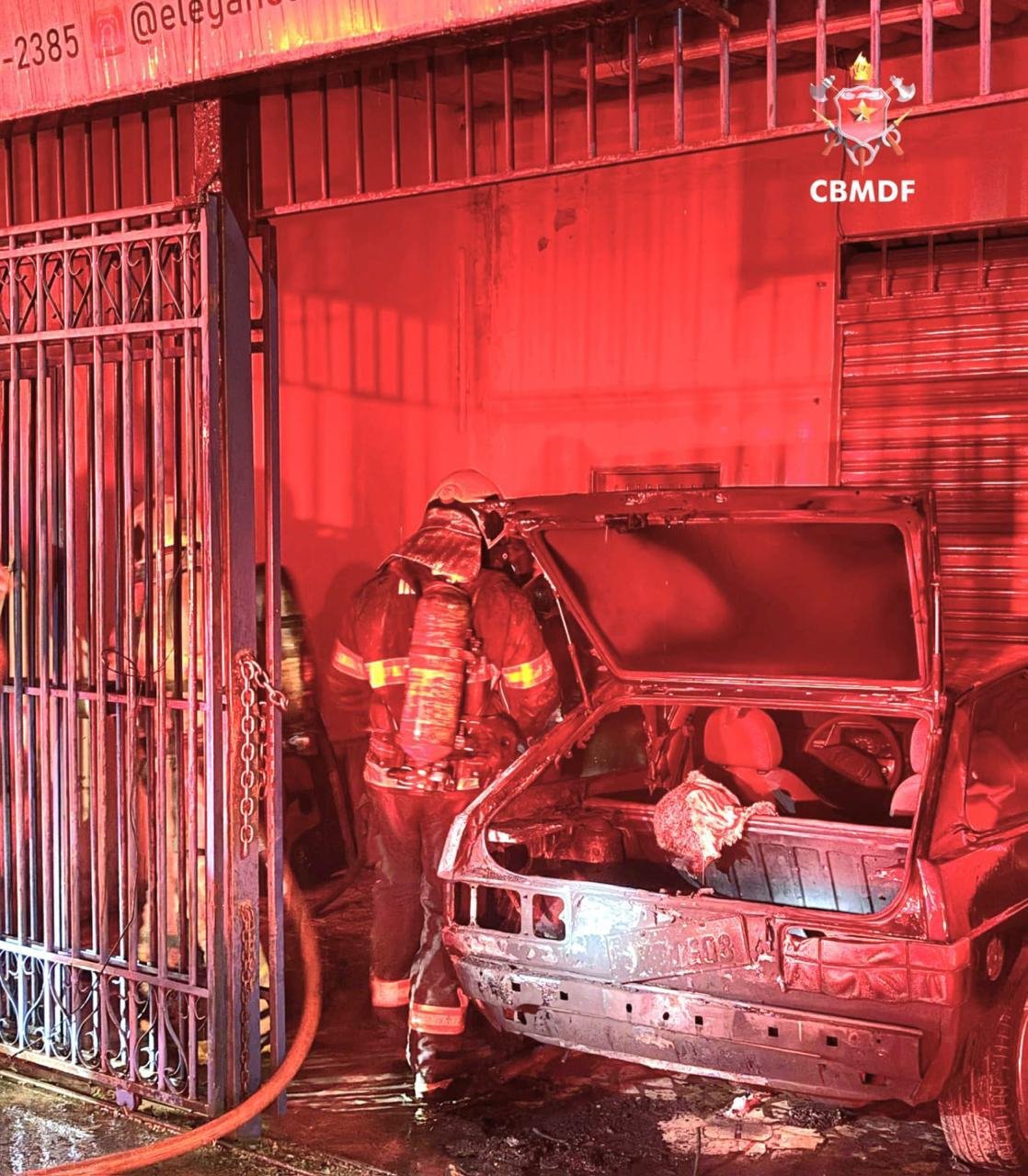 O combate às chamas foi realizado por equipes do Corpo de Bombeiros Militar do Distrito Federal (CBMDF), que enviaram quatro viaturas ao local. Ao chegarem, os militares encontraram um VW Gol CL 1.8, de cor verde, em chamas dentro da garagem da casa.