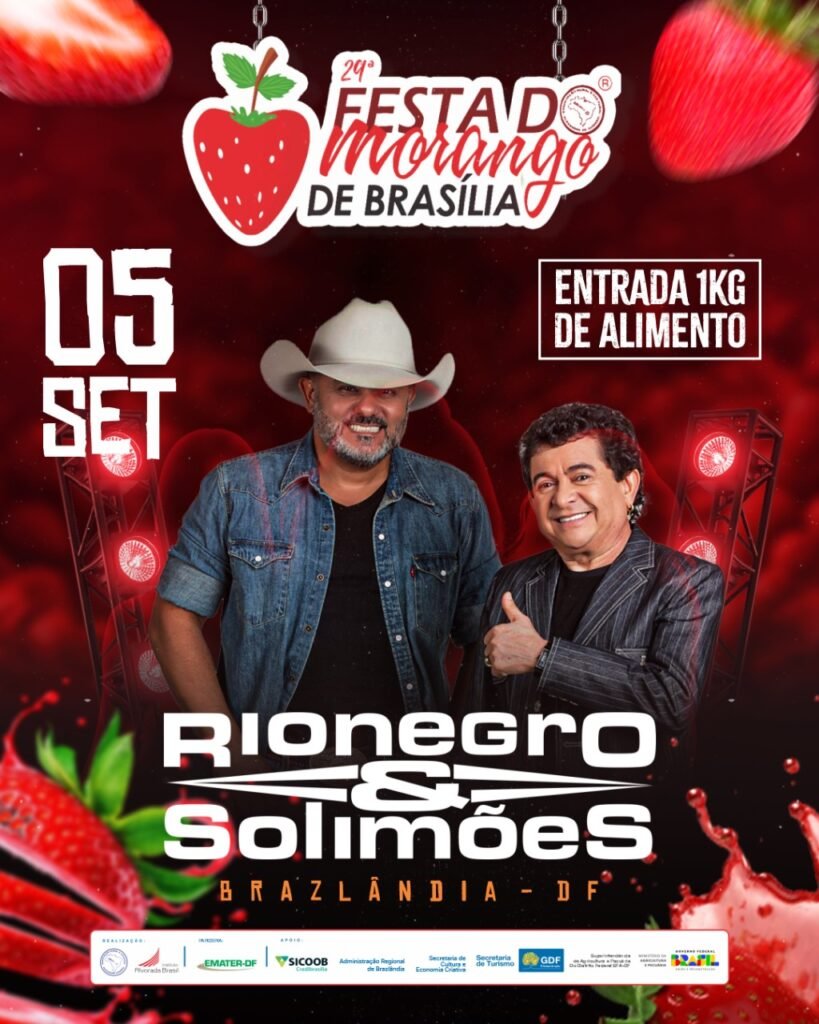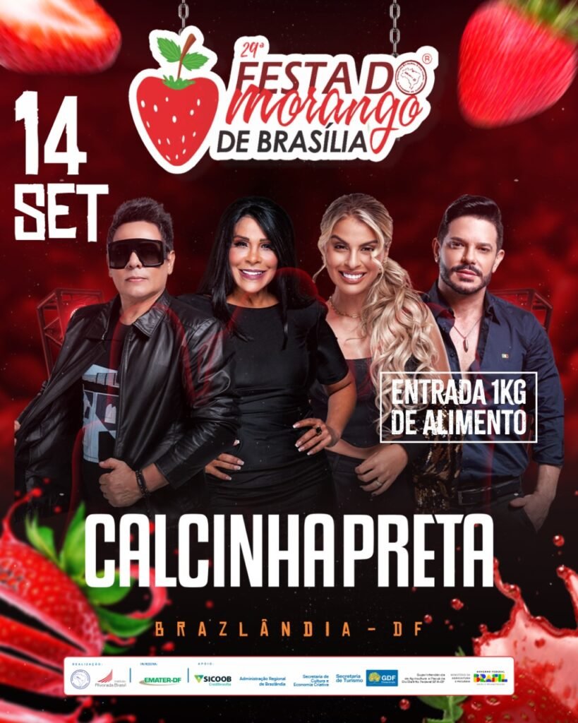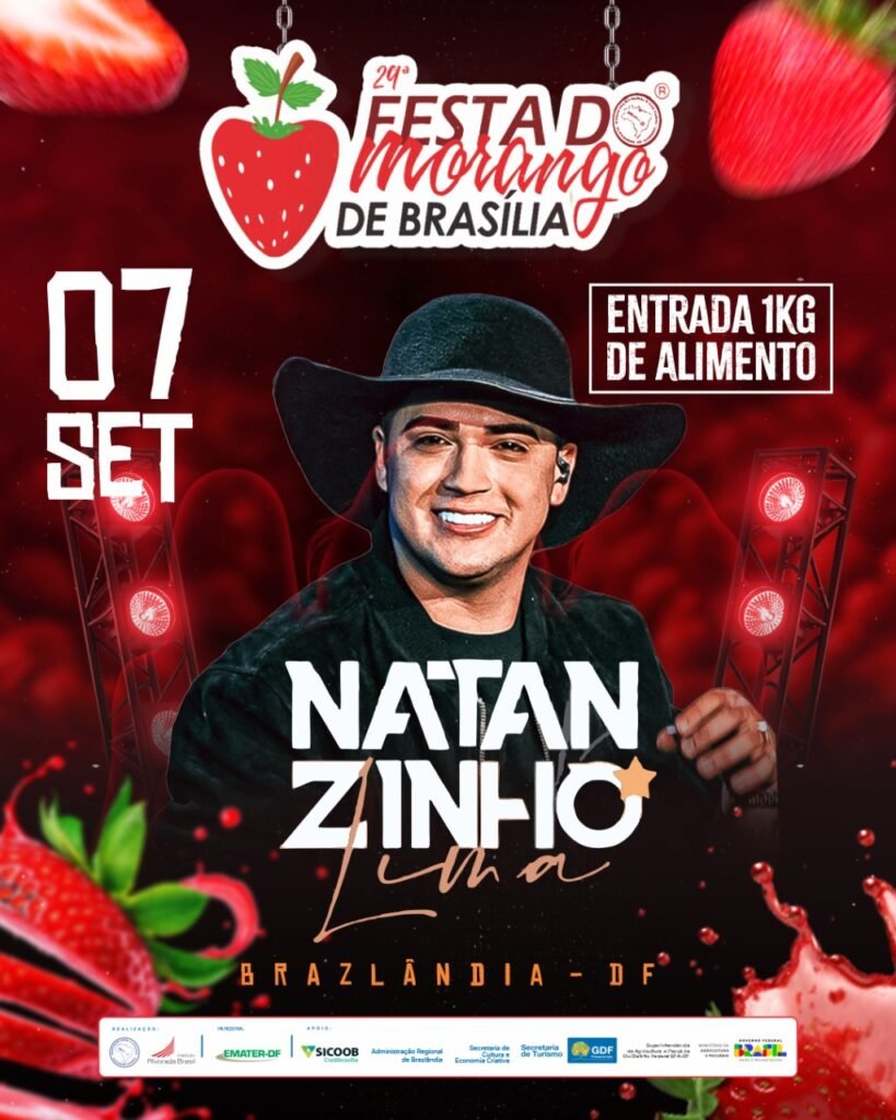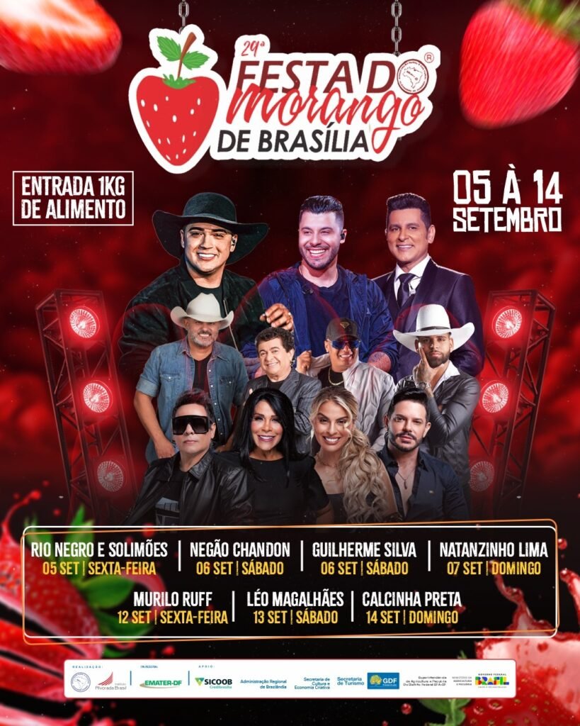 A 29ª edição da tradicional Festa do Morango de Brasília já tem data marcada! O evento será realizado em Brazlândia nos dias 5 a 7 e 12 a 14 de setembro, consolidando-se como parte do calendário oficial do Distrito Federal e do coração dos brasilienses.